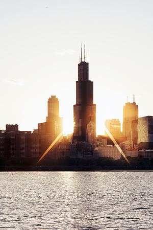 Striking rays peeking through Skydeck chicago
